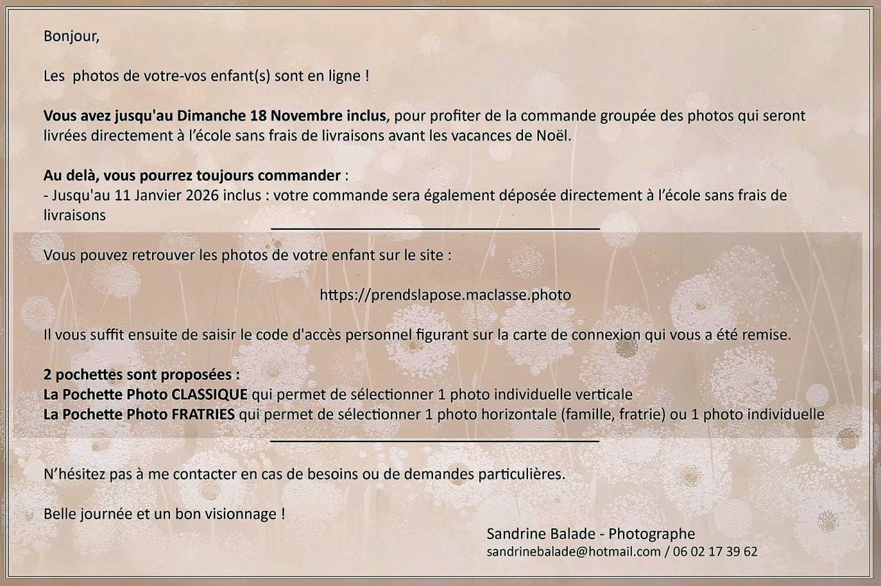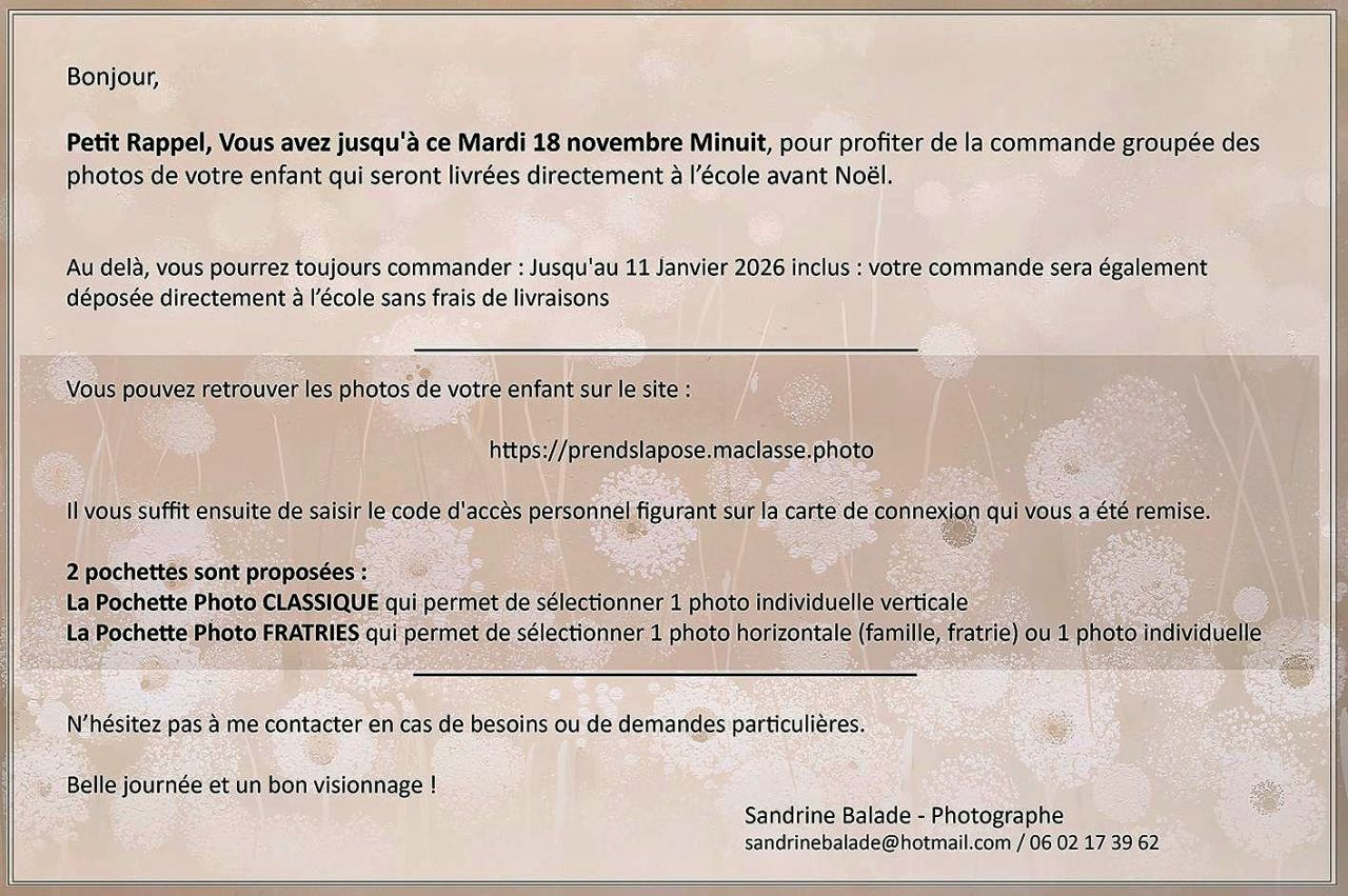 La note vous a également été distribuée version papier pour pouvoir bénéficier des portraits de fratrie avec les ainés d'élémentaire.