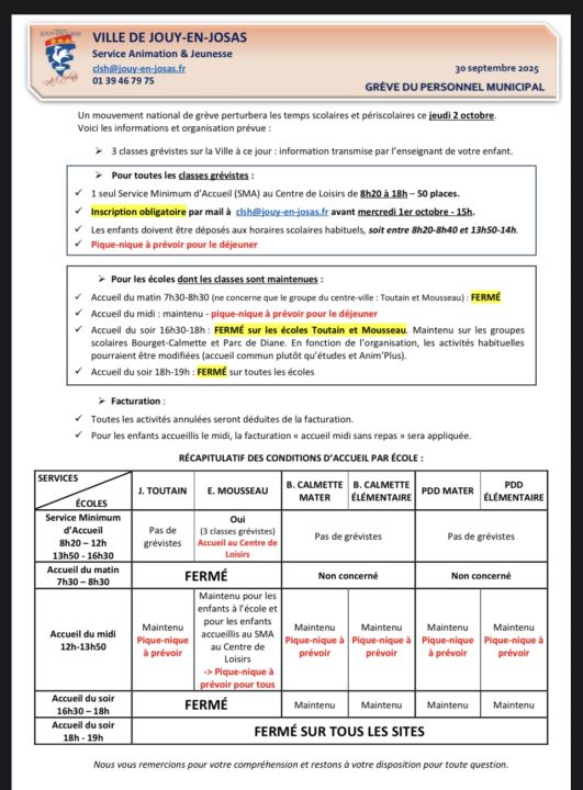 Les cours ne seront pas assurés jeudi 18 septembre 2025.